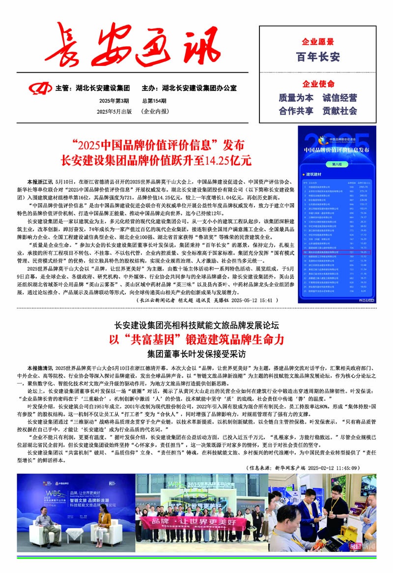 • 2025-05-13 湖北長安建設集團亮相科技賦能文旅品牌發展論壇: 以“共富基因”鍛造建筑品牌生命力
